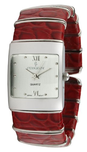 !±8± Peugeot Women's PQ2852-RD Silver-Tone Red Cuff Watch