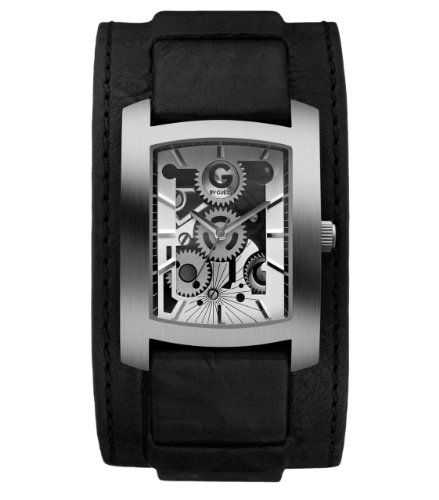 !±8± G by GUESS Black Leather Gear Cuff Watch