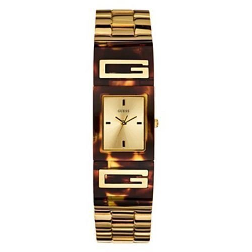 Go for the unexpected with this unique cuff-style watch that'll add flair to any look. ? Analog function ? Watch dimensions in mm: 21/25.5/11 ? Gold-tone and tortoise-style case ? Gold-tone dial ? Gold-tone and tortoise-style bracelet, self adjustable ? Water resistant ? 10 Year Limited Warranty Women's Accessories > Watches > Guess Watches