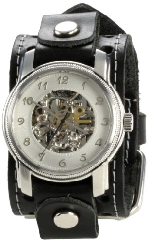 !±8±Nemesis Men's STH002S Signature Mechanical Silver Dial Leather Cuff Watch
